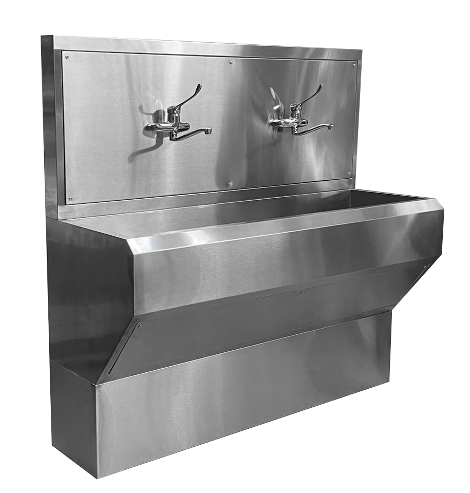 Умывальник-мойка хирургическая «FamAIR» двухместная из нержавеющей стали с локтевым смесителем